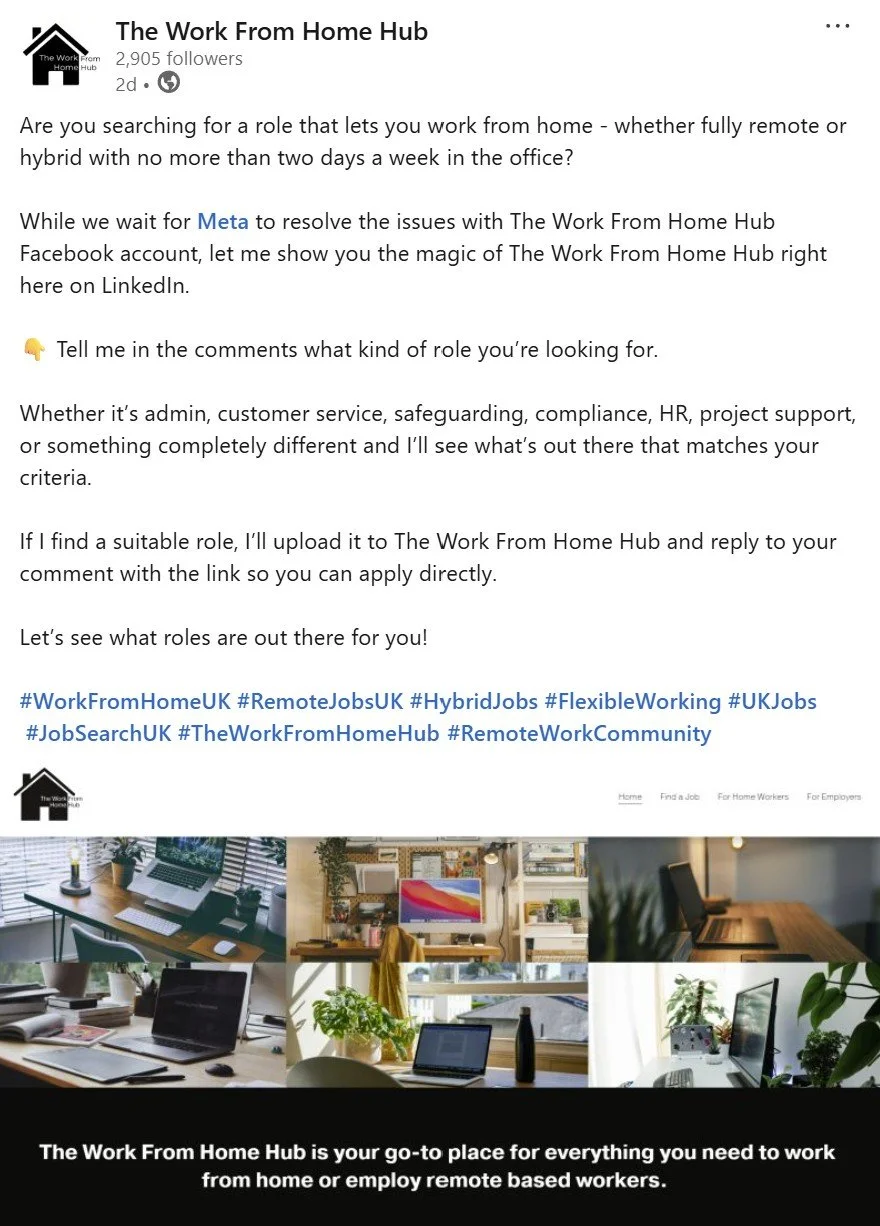The Work From Home Hub Facebook page is currently suspended (more information further down this page).